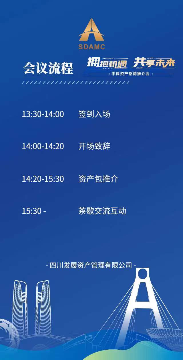 4月11日,四川發(fā)展資產(chǎn)管理有限公司將在成都高新區(qū)交子國(guó)際酒店舉辦“2024年不良資產(chǎn)招商推介會(huì)”,誠(chéng)邀您的參與。