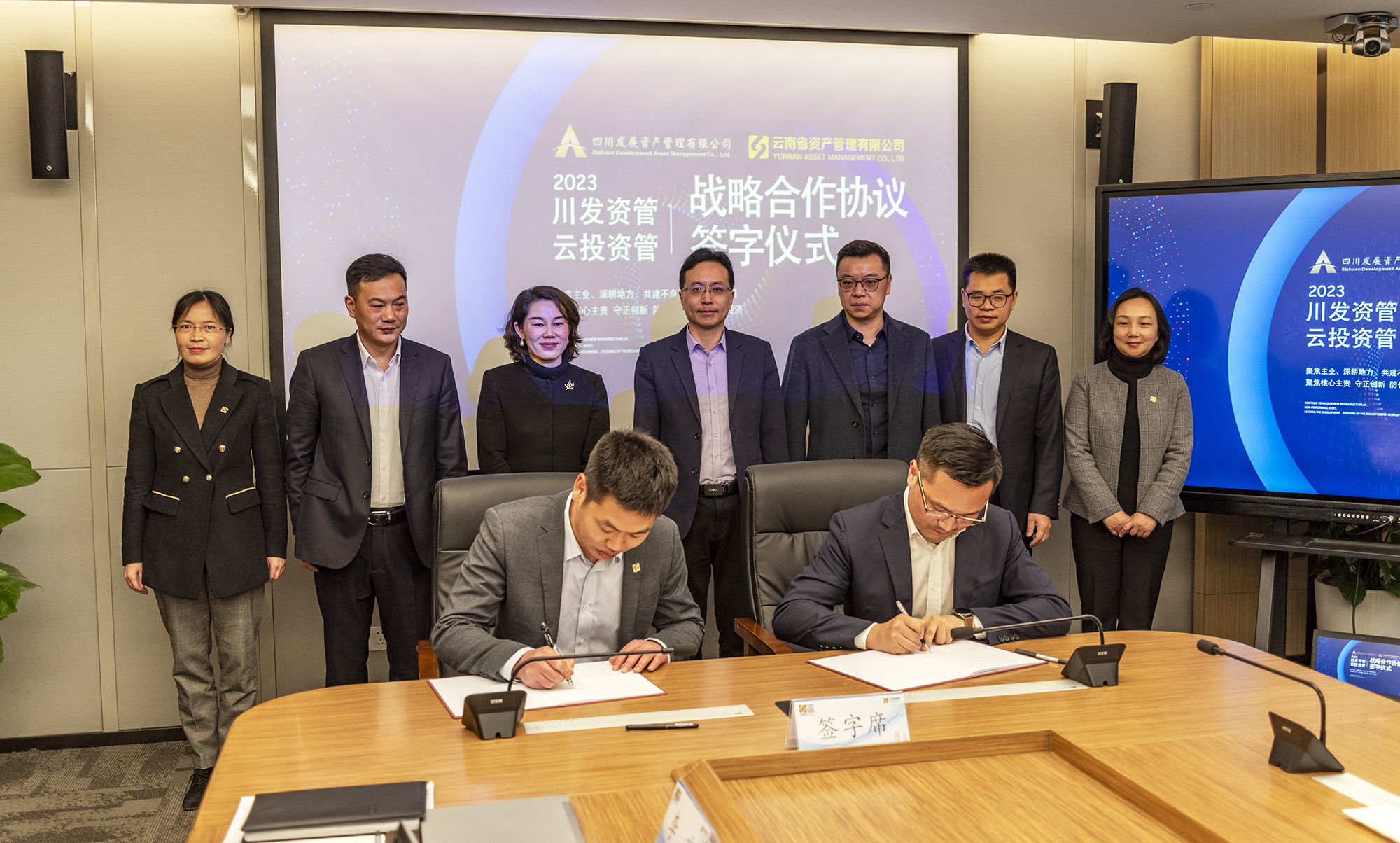 2月23日,四川發(fā)展資產(chǎn)管理有限公司(以下簡稱“川發(fā)資管”)與云南省資產(chǎn)管理有限公司(以下簡稱“云投資管”)簽署《戰(zhàn)略合作協(xié)議》,標(biāo)志著雙方達(dá)成了“聚焦主業(yè)、深耕地方、共建不良資產(chǎn)管理生態(tài)圈”的合作共識,確立了“著眼全局、立足長遠(yuǎn)、互惠共贏”的戰(zhàn)略合作主旨。四川金融控股集團(tuán)有限公司(以下簡稱“四川金控集團(tuán)”)黨委委員、副總經(jīng)理龔智強(qiáng),云南省投資控股集團(tuán)有限公司(以下簡稱“云南投資集團(tuán)”)黨委委員、副總裁張郁出席簽約儀式并講話。川發(fā)資管黨委書記、董事長張波,云投資管黨支部書記、董事長郭昊英出席簽約儀式。