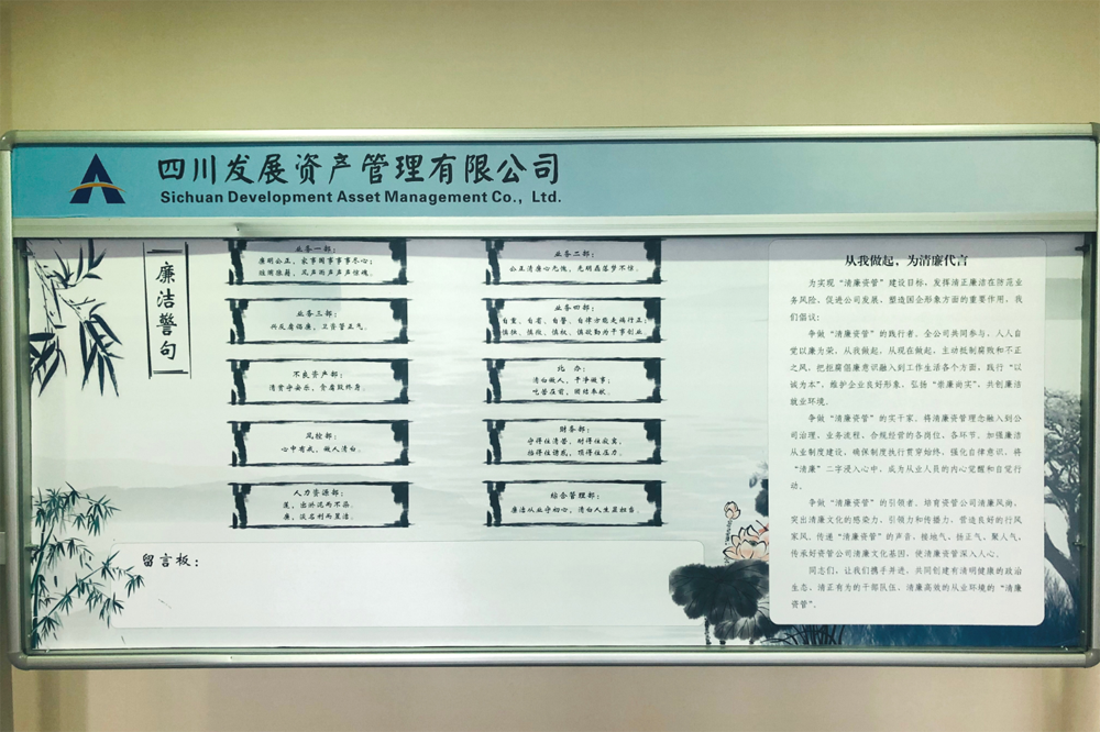 會上,首先由公司黨支部紀檢委員張勇集中展示了向各部門征集的廉潔警句,并宣讀了“從我做起,為清廉代言”的清廉倡議書。為了實現(xiàn)“清廉資管”建設目標,倡議全體員工要爭做“清廉資管”的踐行者、實干家和引領者,共同創(chuàng)造有清明健康的政治生態(tài)、清正有為的干部隊伍、清廉高效的從業(yè)環(huán)境的“清廉資管”。