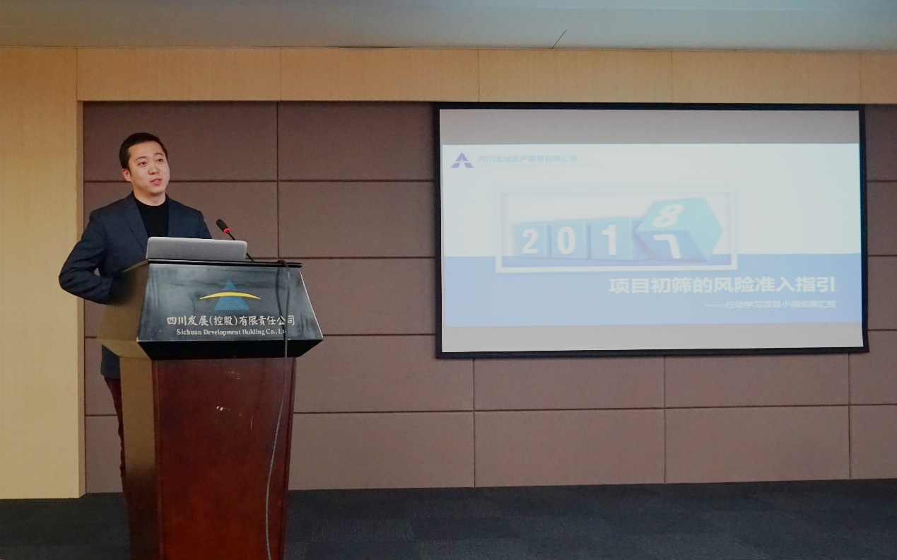 自2017年8月份啟動“起跑線與加速度”行動學(xué)習(xí)培訓(xùn)項目以來,培訓(xùn)團(tuán)講師先后為公司高層、中層、業(yè)務(wù)骨干及基層人員舉辦了領(lǐng)導(dǎo)力、結(jié)構(gòu)化思維、執(zhí)行力等十余場專題培訓(xùn),根據(jù)培訓(xùn)課程安排,公司全體員工按照工作協(xié)同、部門統(tǒng)籌、破除壁壘、優(yōu)勢互補(bǔ)、高度參與的原則,組建了4個學(xué)習(xí)行動小組,每組根據(jù)業(yè)務(wù)需要,按照發(fā)現(xiàn)問題、分析問題、解決問題的原則,確定了“項目初篩的風(fēng)險控制”、“項目后評價機(jī)制”、“中介機(jī)構(gòu)后評價及管理”、“不良資產(chǎn)包后端處置流程指引細(xì)化”等四個研究課題。每個行動小組確定課題后,歷時2個多月,先后經(jīng)過多次討論、反復(fù)修改,最終形成了項目初篩、中介機(jī)構(gòu)選聘、不良資產(chǎn)包后端處置、后評價等4個專項制度或業(yè)務(wù)指引。本次由公司領(lǐng)導(dǎo)牽頭、全體員工參與的行動學(xué)習(xí)匯報大會,不僅是本次行動學(xué)習(xí)培訓(xùn)課程安排的實戰(zhàn)內(nèi)容之一,也是對本次為期4個月的培訓(xùn)成果的一次全面檢驗。