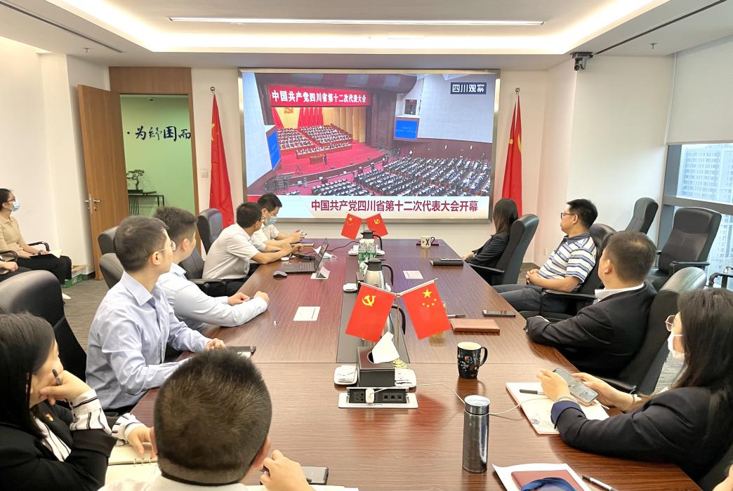 5月27日上午9點(diǎn),四川金控集團(tuán)旗下四川發(fā)展資產(chǎn)管理有限公司黨委采用設(shè)置主會(huì)場(chǎng)和2個(gè)分會(huì)場(chǎng)的形式,組織全體干部職工集中收看中國(guó)共產(chǎn)黨四川省第十二次代表大會(huì)開幕式。